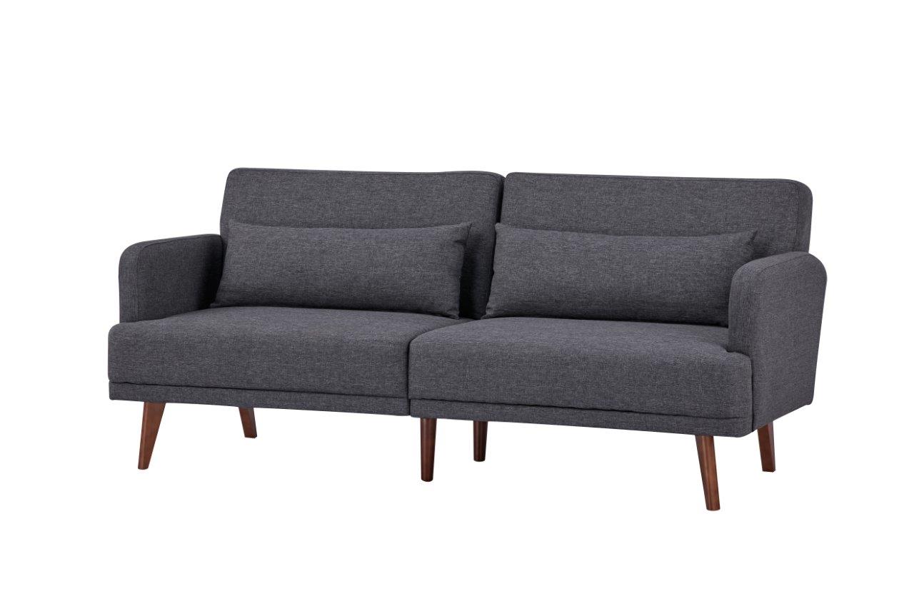 Divano Letto 3 Posti Struttura in legno, rivestimento in tessuto poliestere di colore antracite, funzione reclinabile a letto con meccanismo click-clack, n.2 cuscini laterali. Dim.: L 194xP 82xH 81 cm - Letto: 177x108