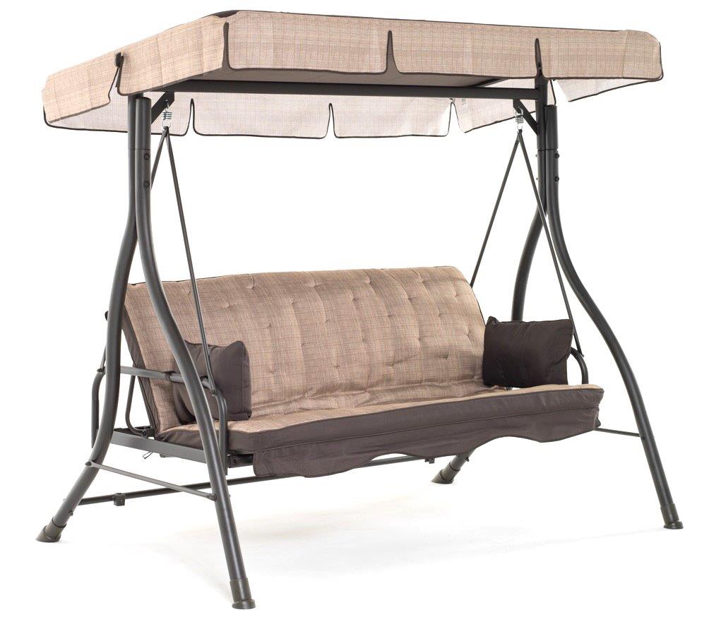 Dondolo con struttura in metallo verniciato da giardino, modello da 3 posti, in metallo verniciato trattato. Da collocare sotto un portico, sotto un gazebo oppure in un terrazzo od ovunque riteniate più opportuno. Ideale per arredare con stile il vostro giardino o terrazzo. Colori disponibili: beige.