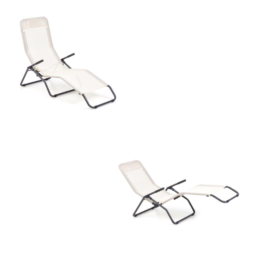 Lettino sdraio mod. Pasha colore ecrù, regolabile in due posizioni, struttura in metallo, telo in textilene traspirante.