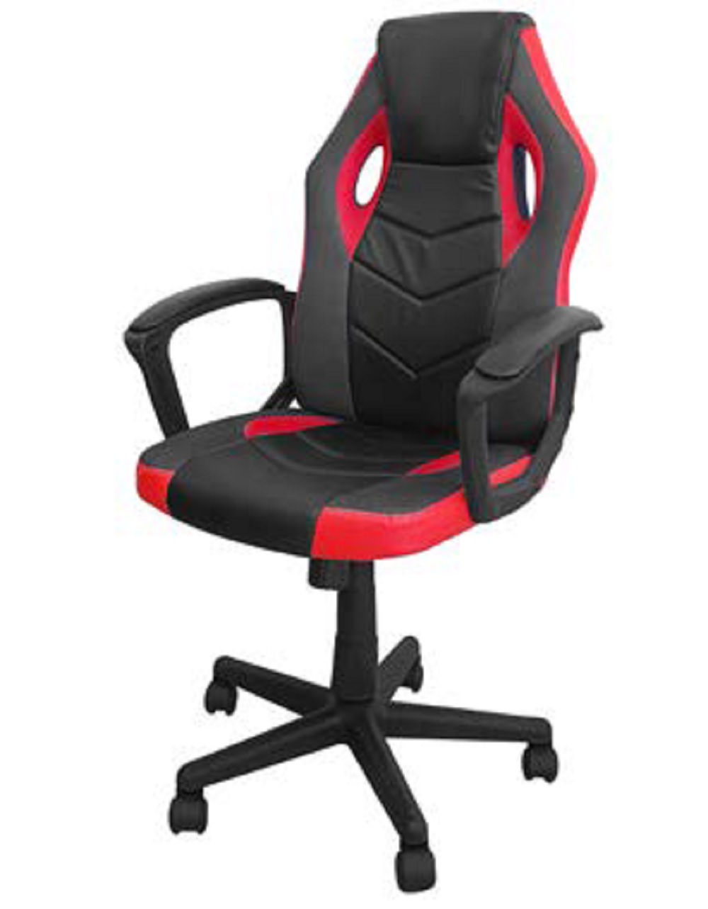 Poltrona Gaming in Ecopelle, Design Ergonomico con Braccioli. Dotata di Pistone a Gas per regolazione in altezza. Dotata di sistema oscillante con manopola di regolazione