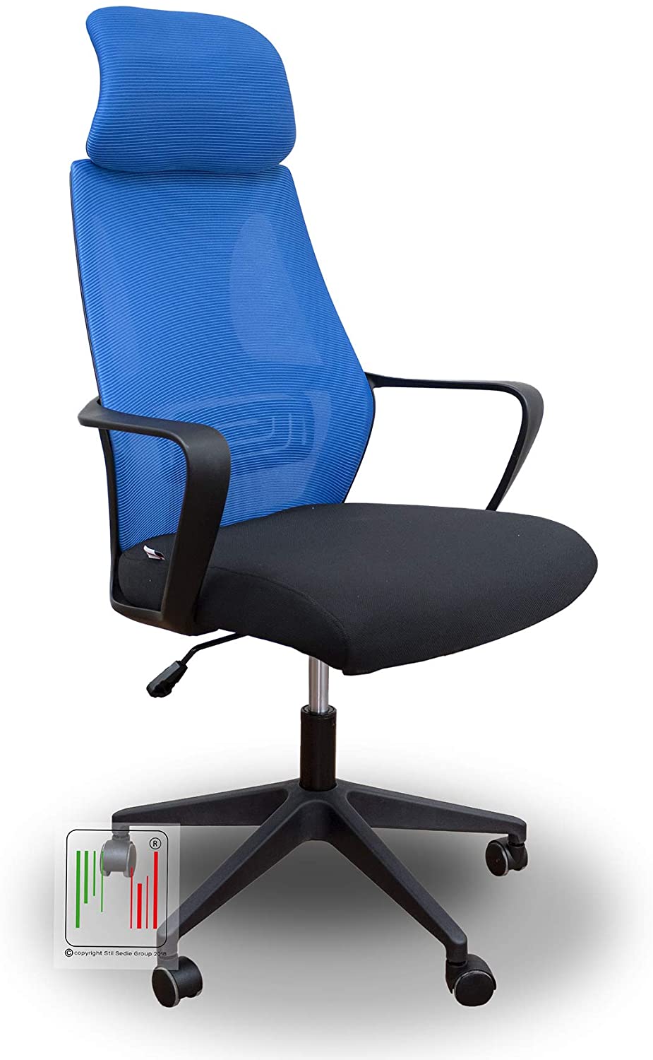 Lab Poltrona Ufficio con poggiatesta, Schienale e Tessuto in Rete (Blu)