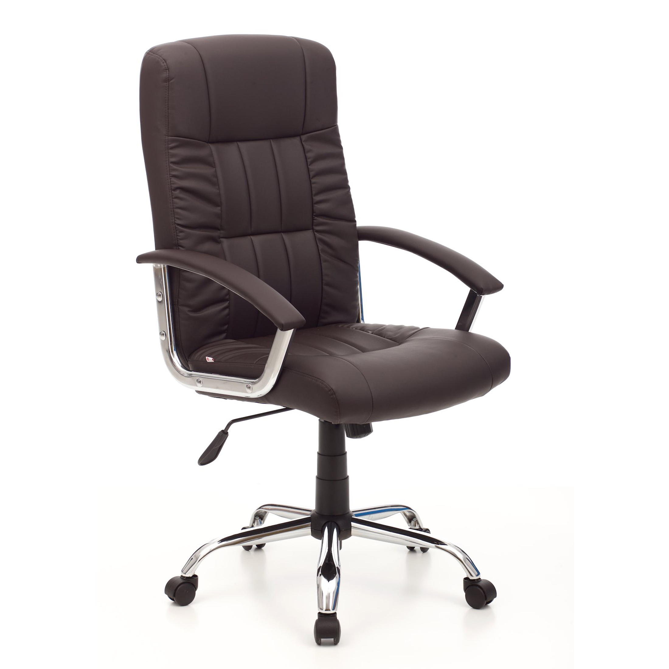 Descrizione: Poltrona per ufficio Presidenziale Struttura in acciaio cromato, base a 5 razze, seduta e schienale con rivestimento in similpelle, braccioli con rivestimento in similpelle, meccanismo alzata a gas con sistema basculante manuale, ruote girevoli.