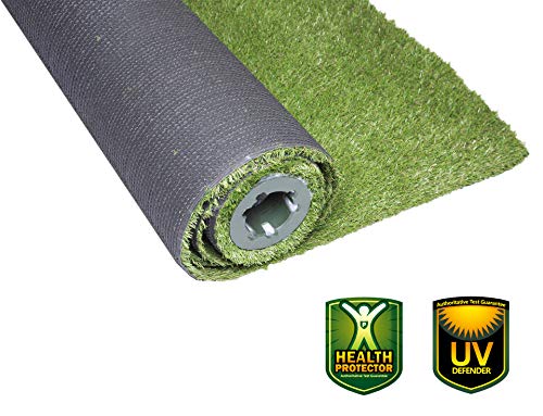 Prato sintetico adatto ad ambienti esterni, 100% fibra polipropilenica, supporto in lattice drenante, spessore 25 mm, resistenza al fuoco. Rotolo 2x10 metri