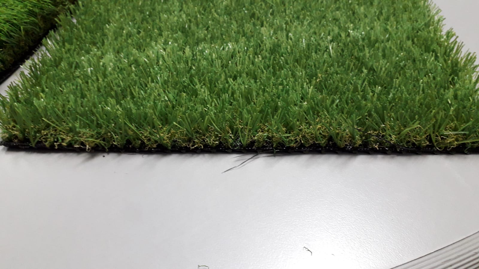 Prato sintetico adatto ad ambienti esterni, 100% fibra polipropilenica, supporto in lattice drenante, spessore 25 mm, resistenza al fuoco.