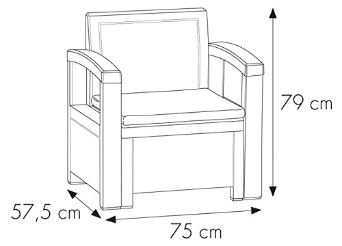 SALOTTINO IN RESINA COMPOSTO DA DIVANO DUE POSTI 3 POLTRONE E TAVOLINO DIMENSIONI: DIVANO 188X57X64 CM. TAVOLINO 70X49X37 CM. 2 POLTRONE 74X57X64 CM. CUSCINI INCLUSI COLORE ANTRACITE PRODUTTORE BICA
