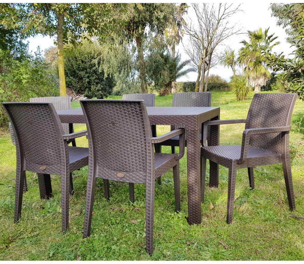 Set Garden Tavolo 140x80 cm con 6 Poltrone impilabili resina da Giardino Antracite
