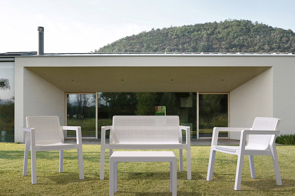 Ultima novità per il classico set in resina! Set composto da due poltroncine, ampio divano, tavolino multiuso. Unico nel suo genere grazie al design moderno e innovativo. Ideale per dare un tocco di freschezza e modernità al vostro giardino.?