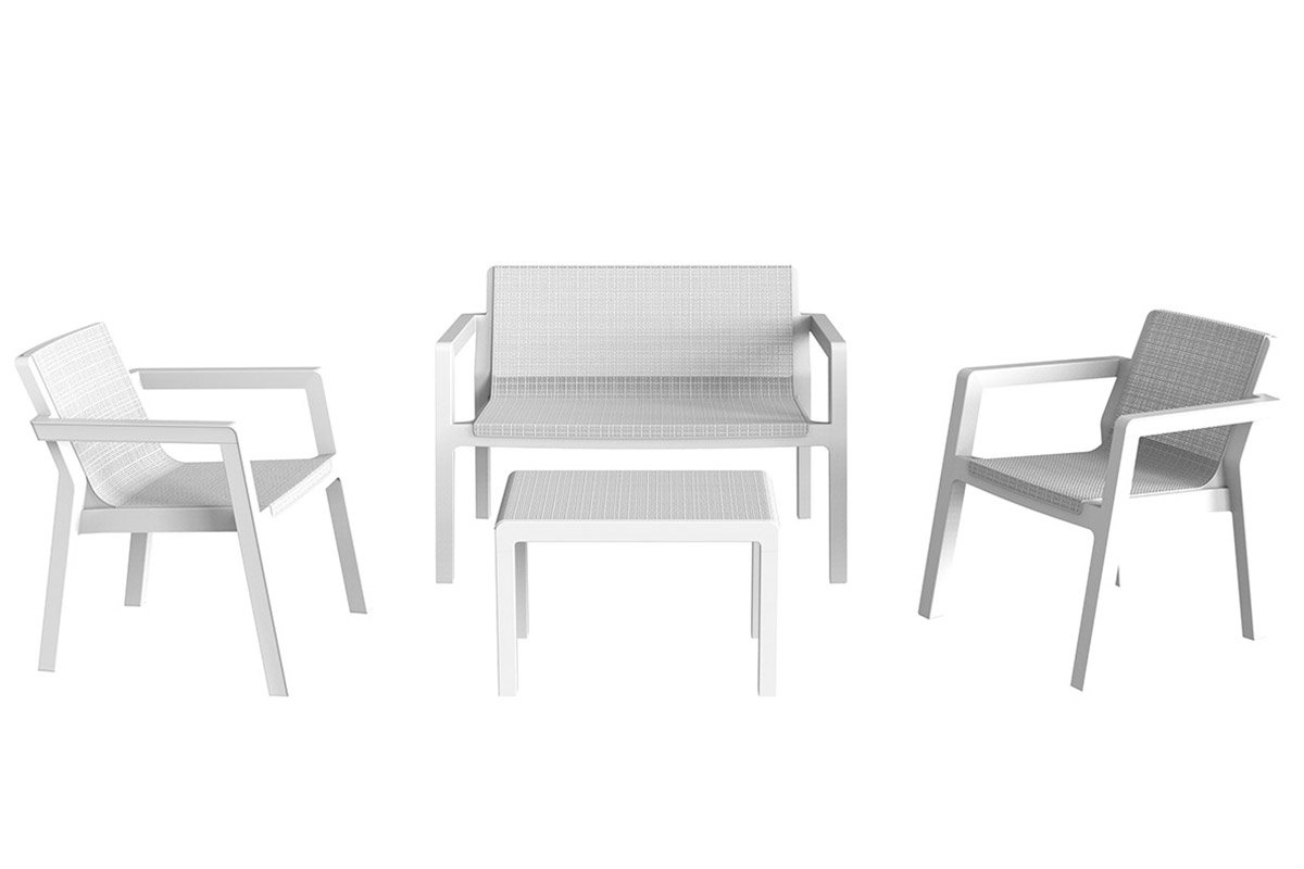 Ultima novità per il classico set in resina! Set composto da due poltroncine, ampio divano, tavolino multiuso. Unico nel suo genere grazie al design moderno e innovativo. Ideale per dare un tocco di freschezza e modernità al vostro giardino.?
